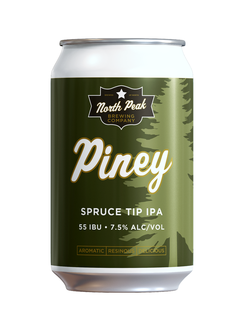 Piney Spruce Tip IPA is aromatic, earthy and bold! Amber-hued and bright with aromas of pine and citrus from North American hops and spruce tips. The hops and spruce tips combined with orange peel and a touch of maple syrup create bold, citrus, resinous flavors. The mellow malt character and towering hop profile of Piney create an IPA as stately as a Spruce!
